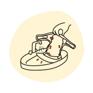 Nous vous conseillons d’éliminer les restes de selles sur les tissus souillés. En effet, les matières ne doivent pas aller dans la machine à laver. Il s’agit donc de faire un rinçage grossier. ATTENTION : ça ne doit pas être un détachage ni un prélavage à la main. On élimine seulement les résidus de matières fécales puis on stocke même si les tissus sont colorés.