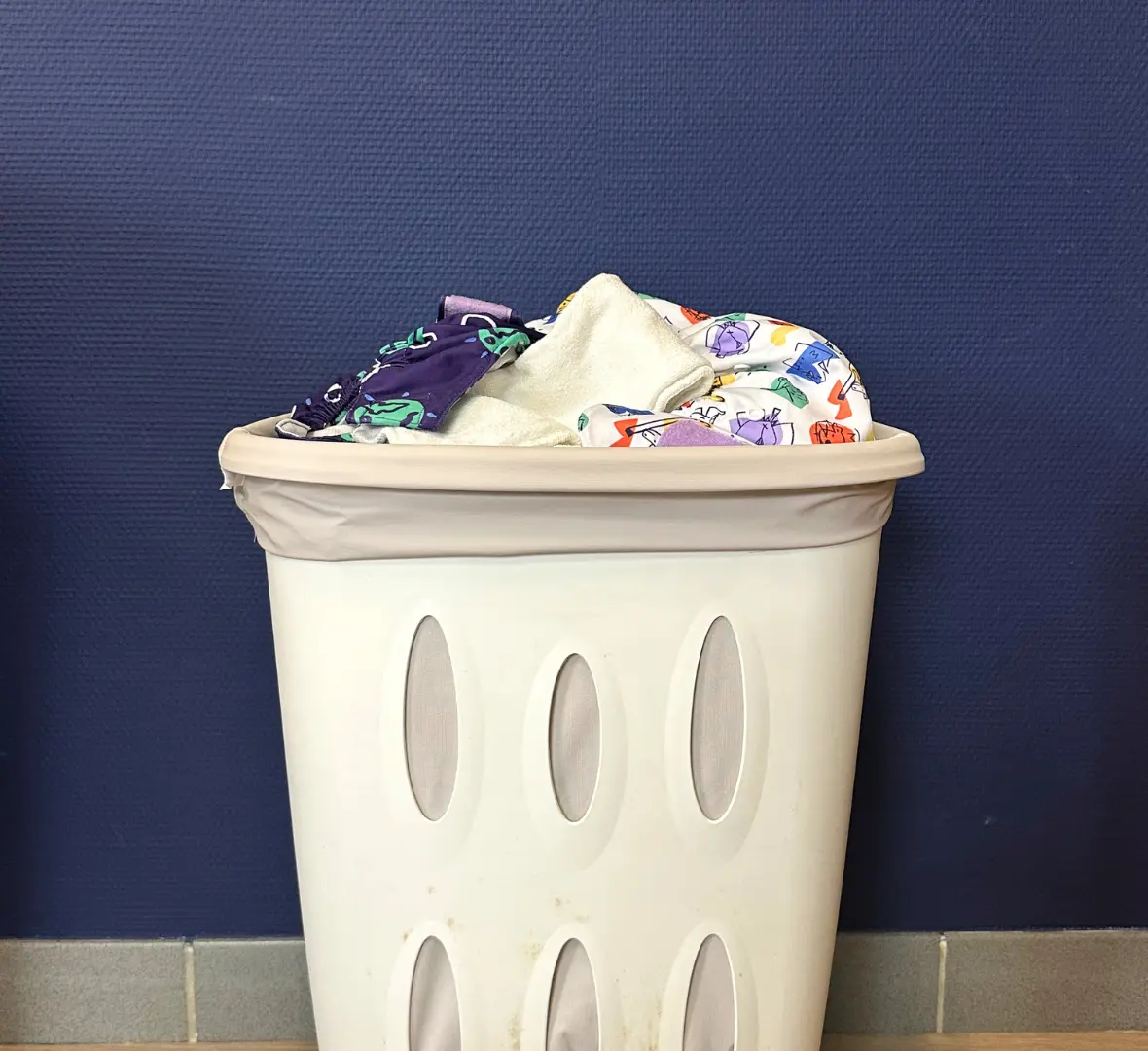 Idéalement, on vous conseille de démonter les couches lavables, autrement dit d’enlever les inserts absorbants des culottes, avant de les stocker dans un même contenant. Ainsi, vous n’aurez pas à faire cette opération de séparation quand vous lancerez le lavage, vous le faites lors du change pour ne pas vous re-salir les mains plus tard.