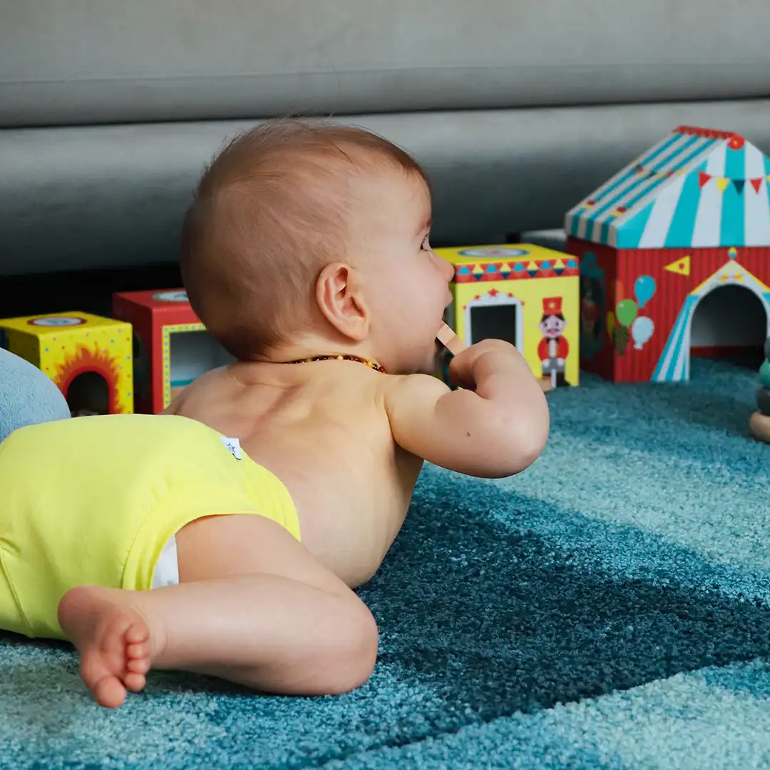 Une fois ces précautions prises, placez l’enfant sur un tapis de sol plutôt ferme pour qu’il puisse se mouvoir facilement. Laissez-lui un espace d’exploration suffisant et mettez à sa disposition des jouets adaptés à son âge pour le stimuler et qu’il se dirige vers ces derniers.