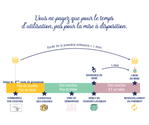 Pour répondre à ce besoin, nous avons mis en place un fonctionnement qui vous permet de recevoir vos couches avant la naissance, sans payer la période de mise à disposition pendant laquelle bébé n’est pas encore là.